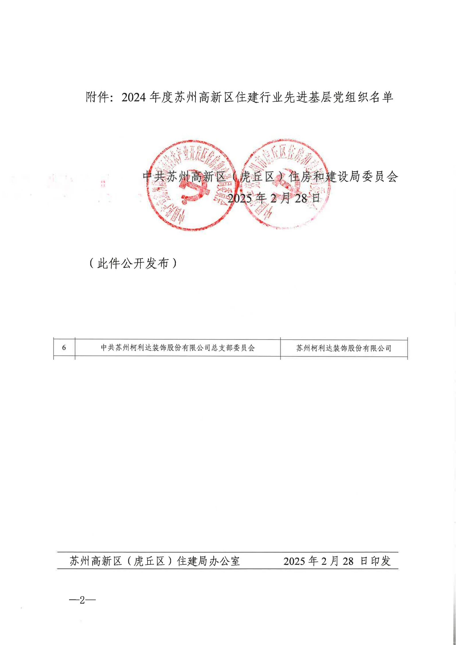 近日,在苏州高新区住建行业党建工作表彰活动中,柯利达党总支凭借在党建工作中的突出表现,荣获“2024年度苏州高新区住建行业先进基层党组织”称号。